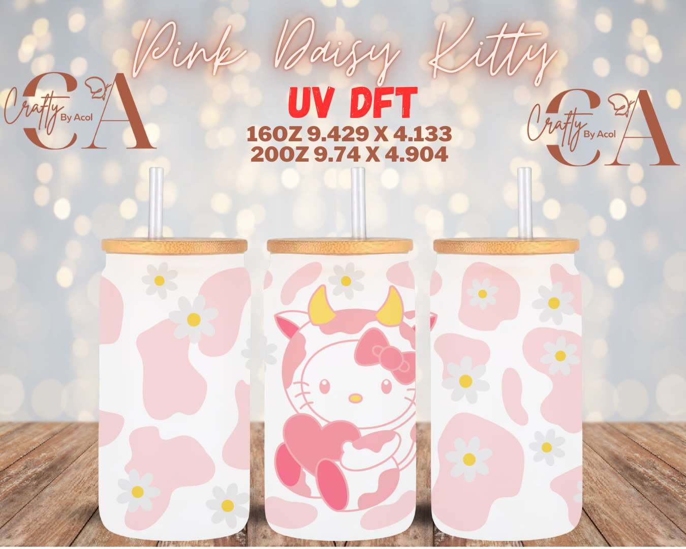 Pink Daisy Kitty UV DFT Cup Wrap