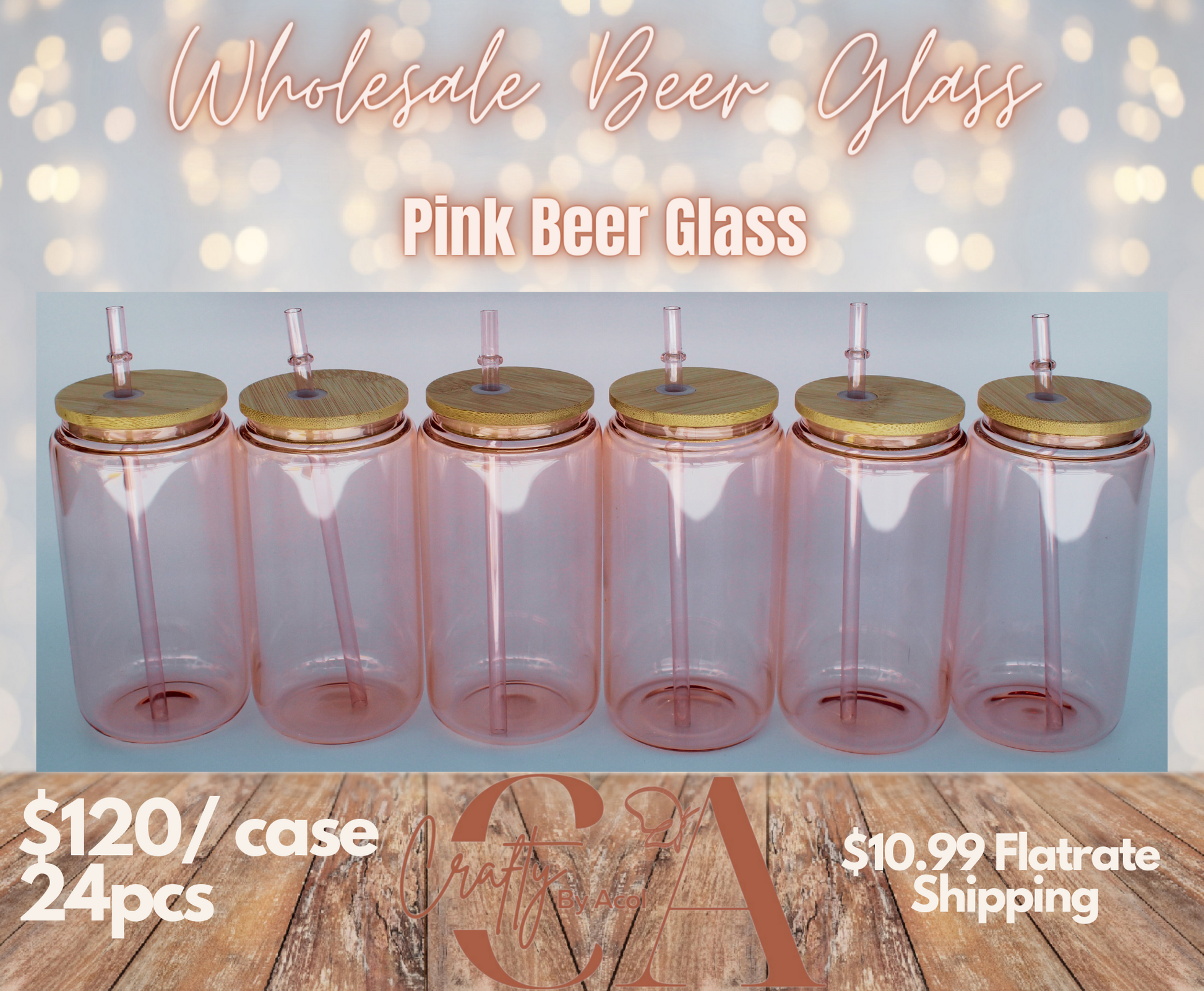16oz Pink Sublimation Beer Glass BULK BOX