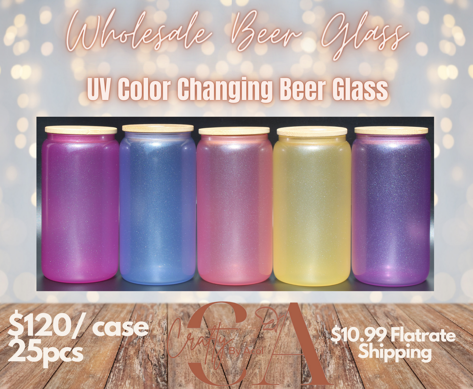 Case of 25pcs Uv Color Changing Beer Glass Cans are perfectly for Sublimation applications and permanent vinyl!